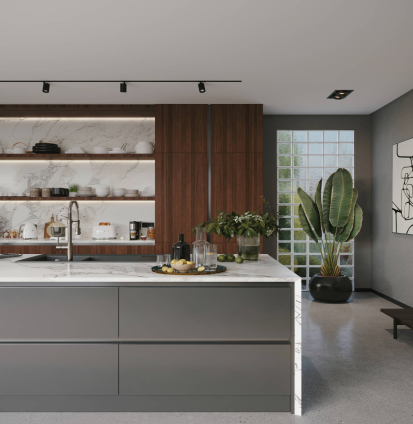 Bir mutfak tezgahı ve mutfak yaşamı için bir sahne olan Chroma, tezgah, altındaki dolaplar ve açık raflar arasında kusursuz bir uyum sunar. Silvo, onu benimseyenler için sonsuz olanaklar sunar.